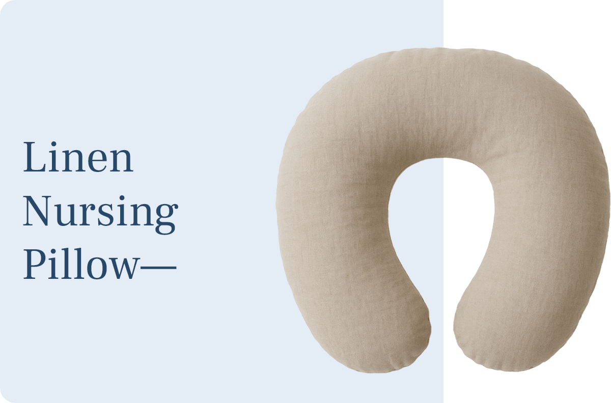 The nursing pillow is crafted from 100% French flax linen, known for its natural breathability, softness, and hypoallergenic properties.