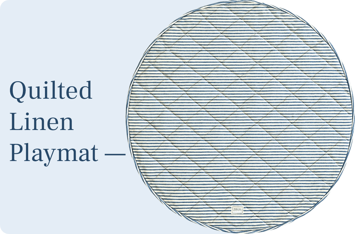 The play mat is crafted from 100% French flax linen outer, known for its natural breathability, softness, and antibacterial properties. It is lightly cushioned with a soft, supportive polyester filling, providing a comfortable surface for your baby.